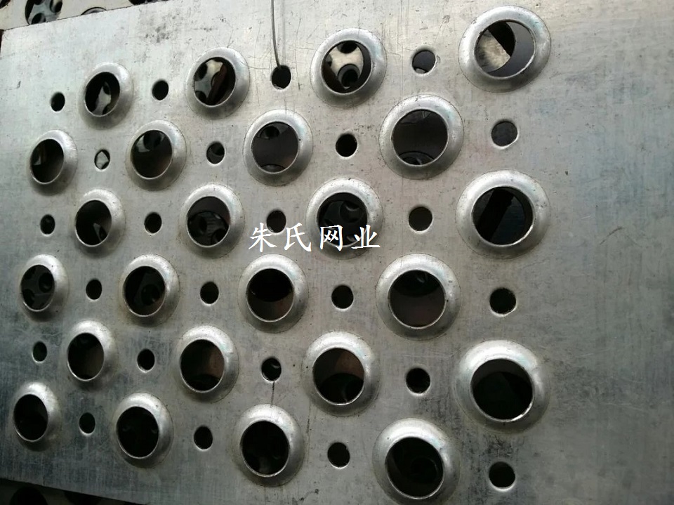 圆形孔防滑板,形似鱼眼所以也叫鱼眼孔板,也叫米勒板,材料可选用铁板(Q235低碳钢板)、镀锌板、不锈钢板(201、304、316、320、430、409),厚度从0.5mm到8mm,孔型大小和排列方式,板材外形尺寸可按客户要求加工定制。