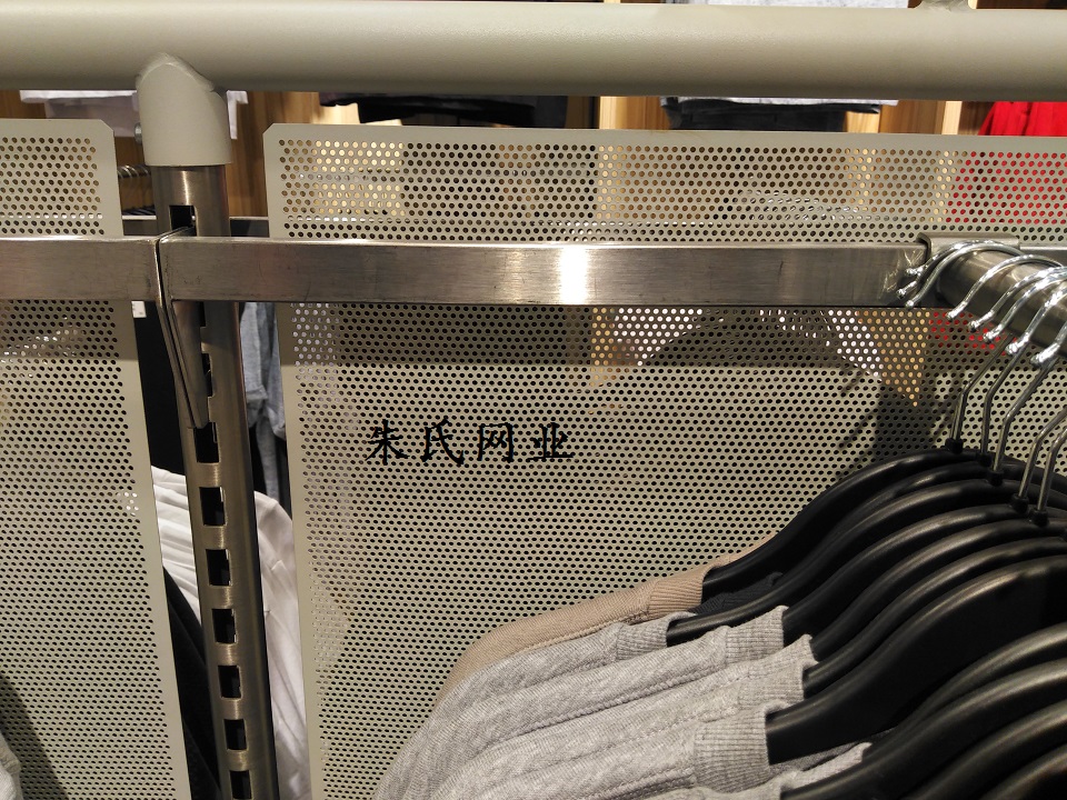 冲孔板用在服装展示架上更加突出了服装亮点,使商场展示货架更显得优美大方视野宽阔。
